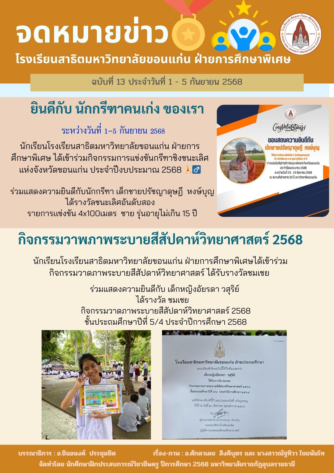 จดหมายข่าว ฝ่ายการศึกษาพิเศษ ระดับประถมและมัธยมศึกษา ฉบับที่ 13 ประจำวันที่ 1-5 กันยายน 2568