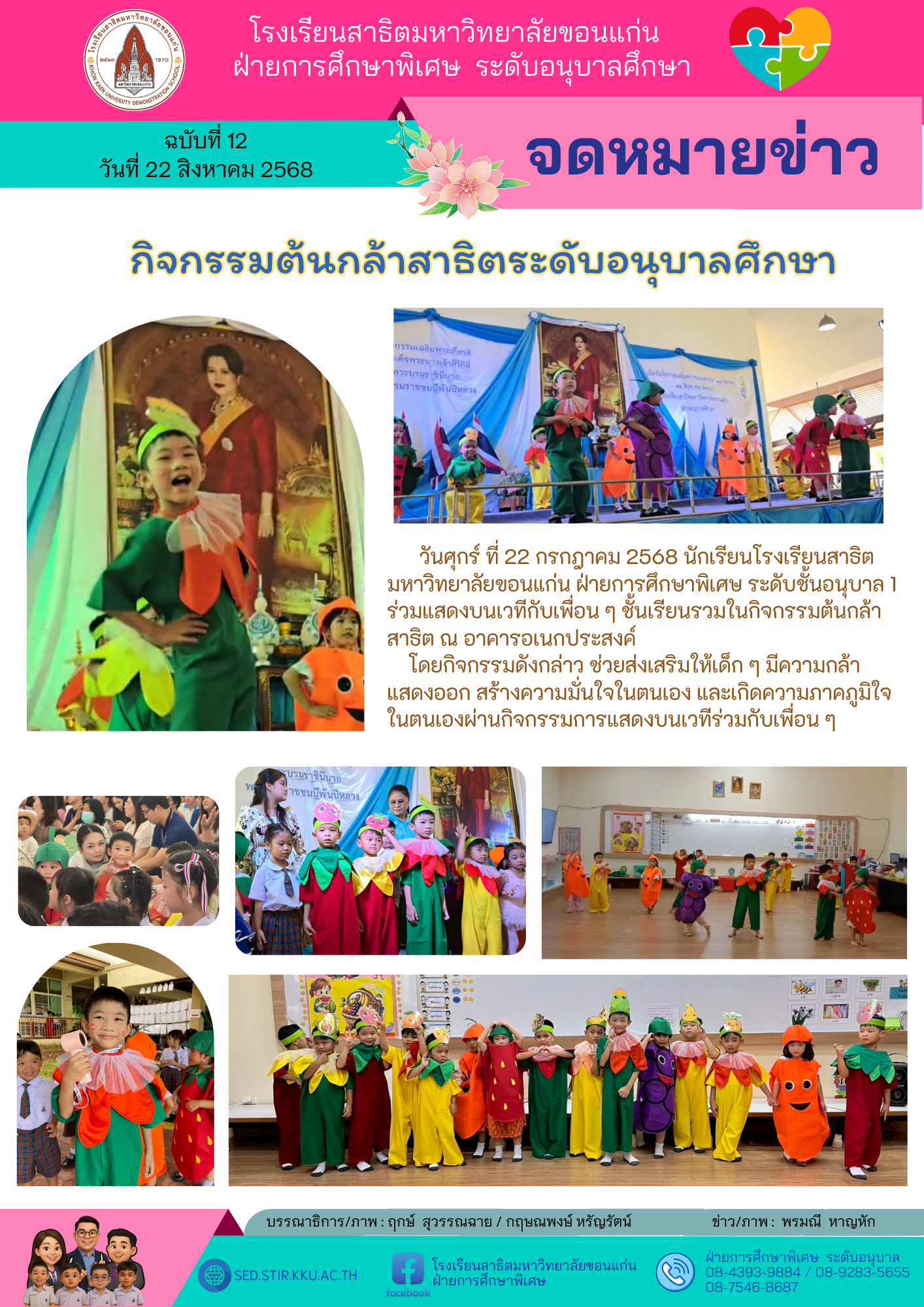 จดหมายข่าาว ฝ่ายการศึกษาพิเศษระดับอนุบาล ฉบับที่ 12 วันที่ 22 สิงหาคม 2568