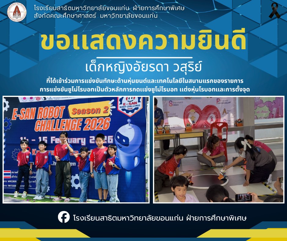 ขอแสดงความชื่นชมยินดี โรงเรียนสาธิตมหาวิทยาลัยขอนแก่น ฝ […]