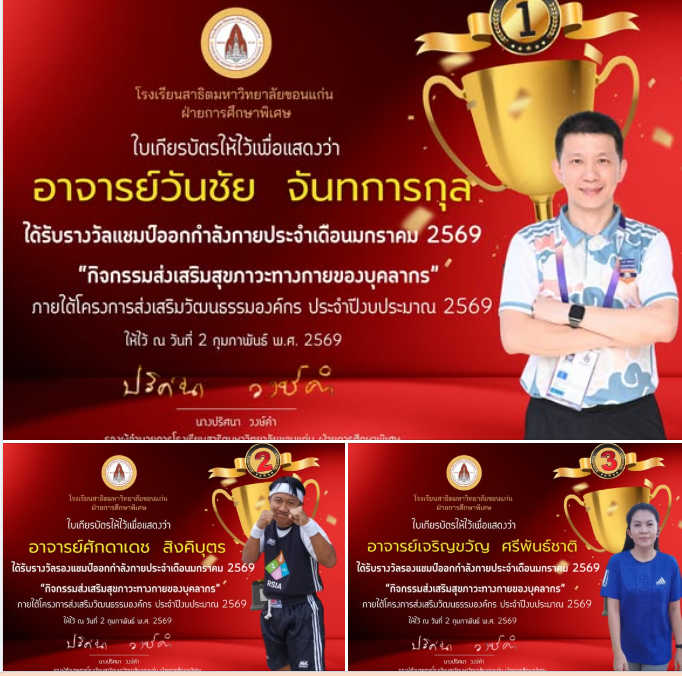 ขอเเสดงความยินดีกับเเชมป์ออกกำลังกายประจำเดือนมกราคม 2569