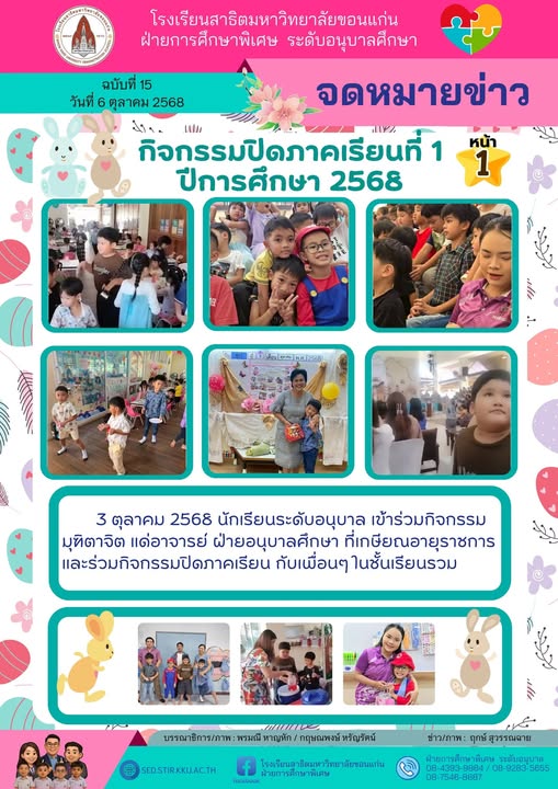 จดหมายข่าว ฝ่ายการศึกษาพิเศษ ระดับอนุบาล ฉบับที่ 15 วันทีี่ 6 ตุลาคม 2568