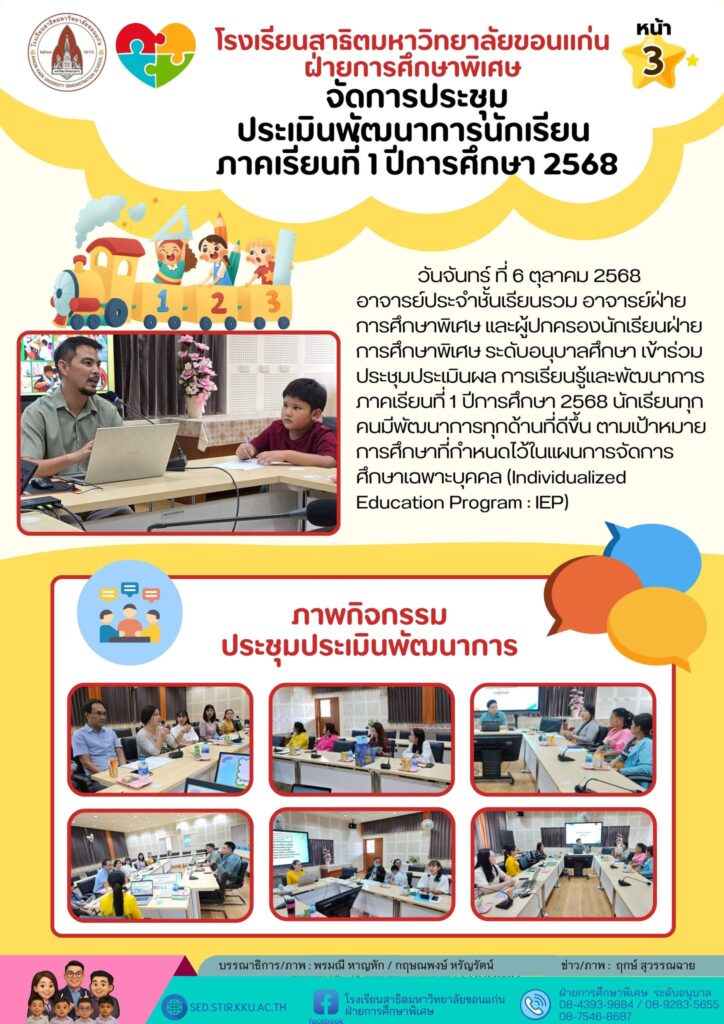จดหมายข่าว ฝ่ายการศึกษาพิเศษ ระดับอนุบาล วันที่ 6 ตุลาคม 2568
