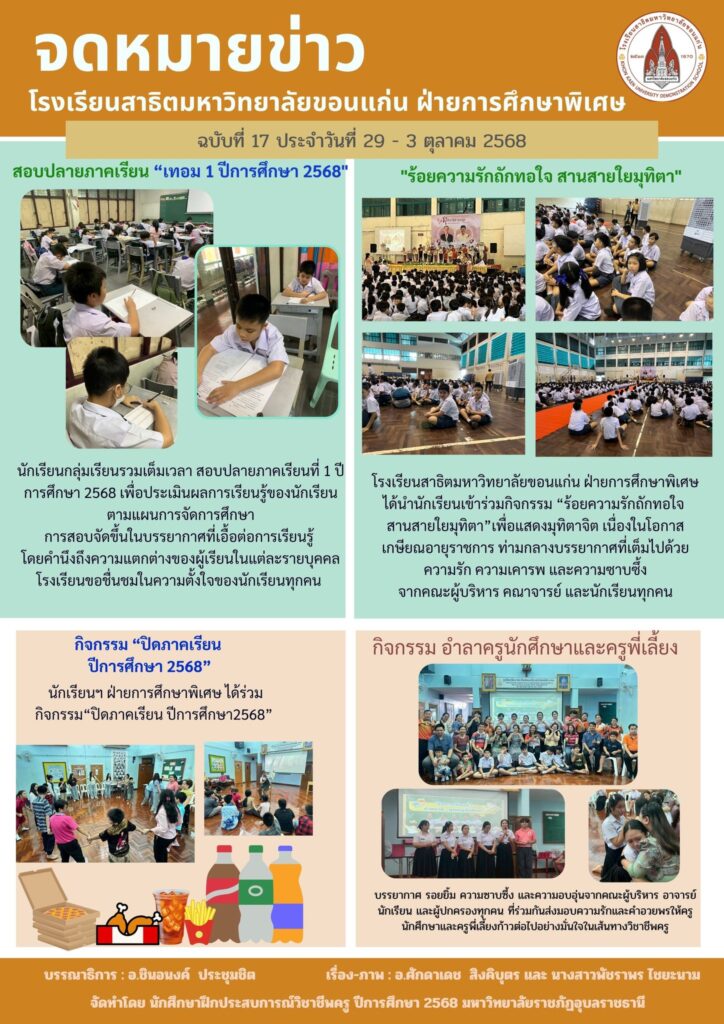 จดหมายข่าว ฝ่ายการศึกษาพิเศษ ระดับประถมและมัธยมศึกษา ฉบับที่ 17 ประจำวันที่ 29-3 ตุลาคม 2568