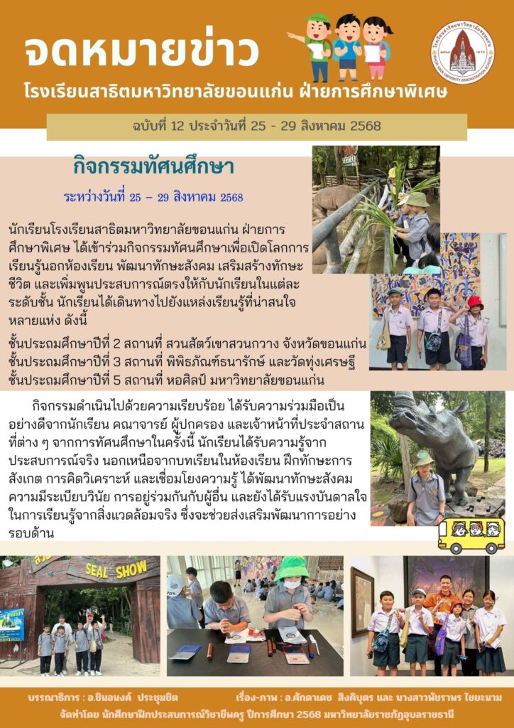 จดหมายข่าวกิจกรรม ฝ่ายการศึกษาพิเศษ ระดับประถมศึกษาและมัธยมศึกษา ฉบับที่12 ประจำวันที่ 25-29 สิงหาคม 2568