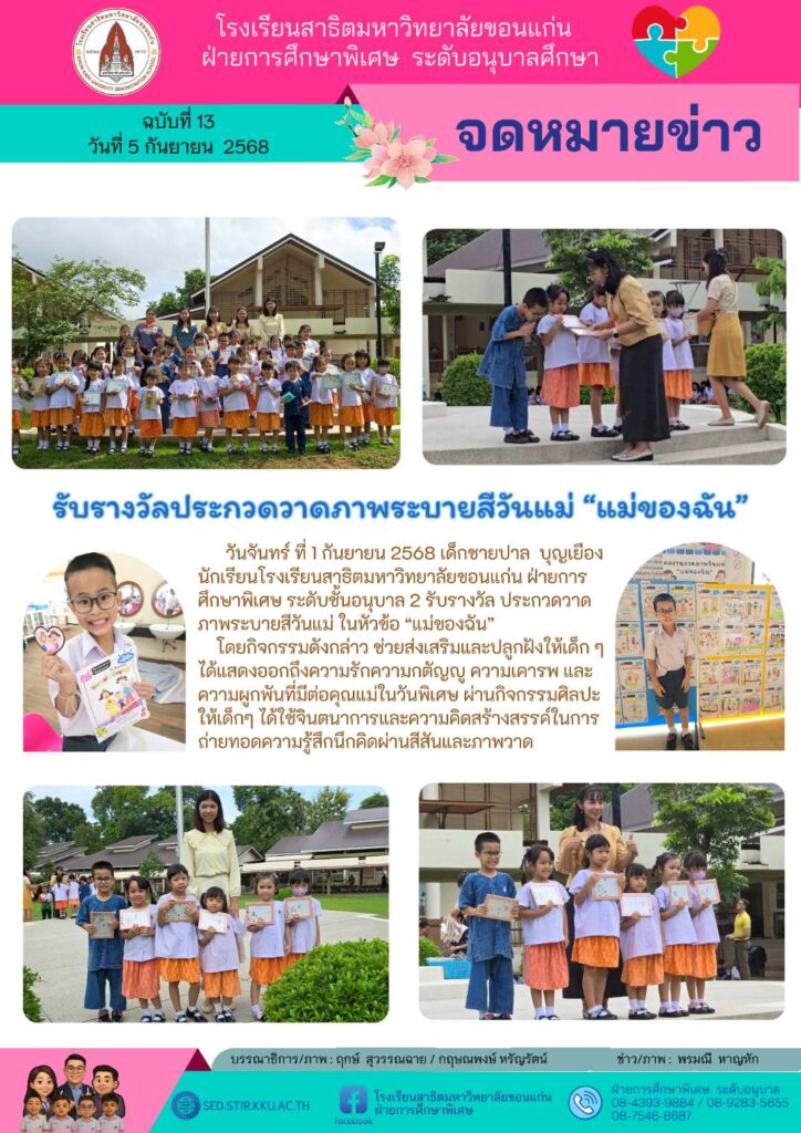 จดหมายข่าว ฝ่ายการศึกษาพิเศษ ระดับอนุบาล ฉบับที่ 13 วันที่ 5 กันยายน 2568