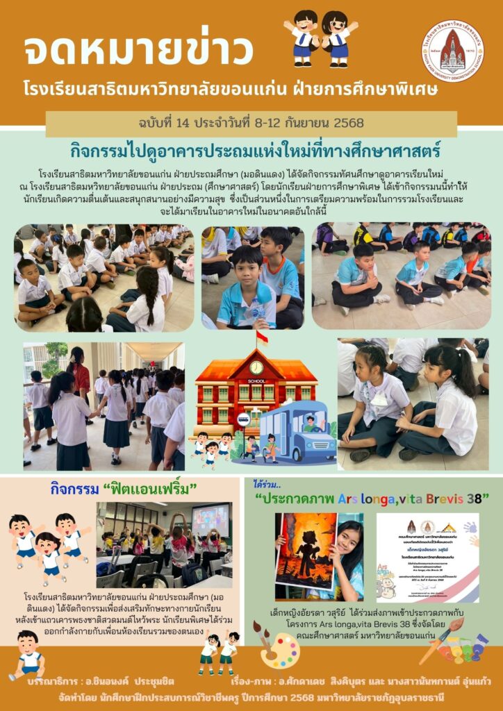 จดหมายข่าว ฝ่ายการศึกษาพิเศษ ระดับประถมและมัธยมศึกษา ฉบับที่ 14 ประจำวันที่ 8-12 กันยายน 2568