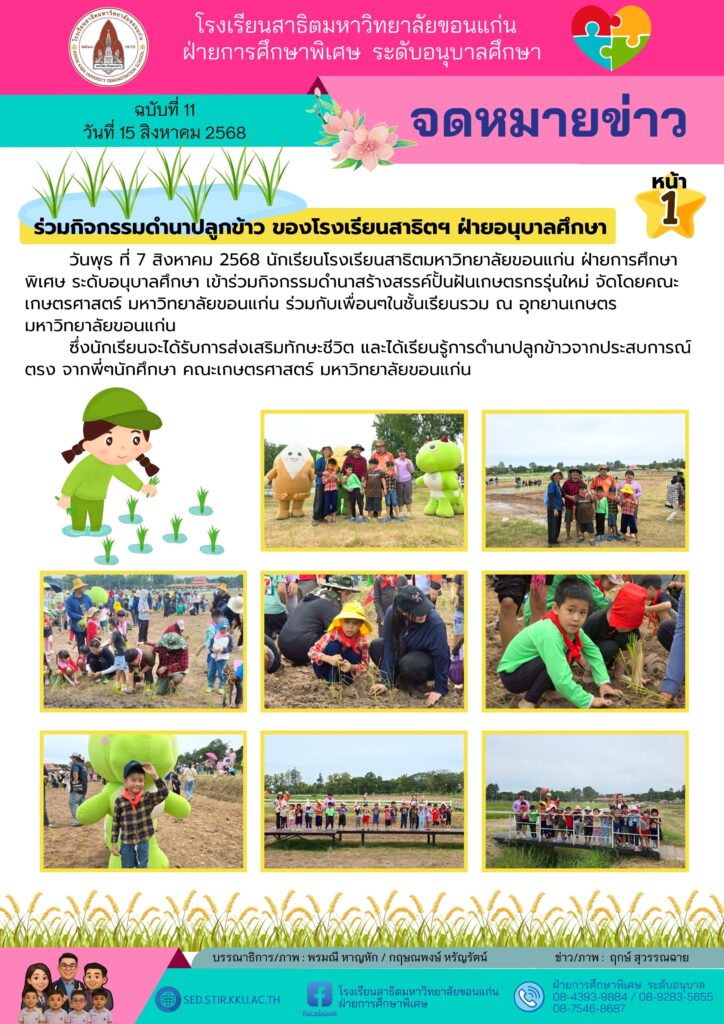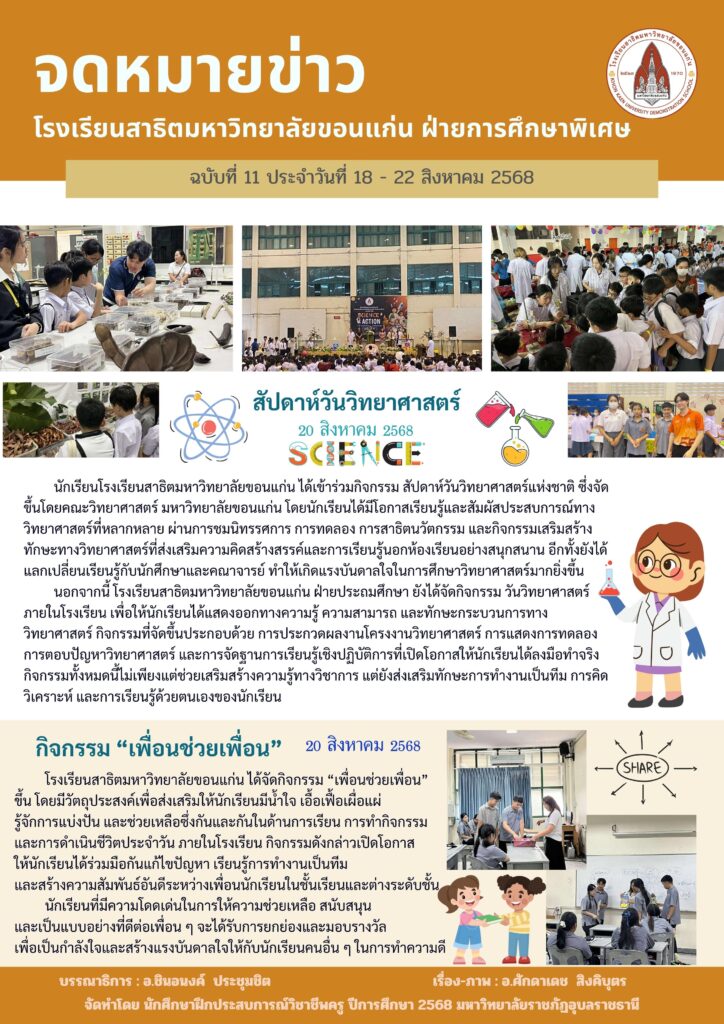 จดหมายข่าว โรงเรียนสาธิตมหาวิทยาลัยขอนแก่น ฝ่ายการศึกษาพิเศษ ระดับประถมและมัธยมศึกษา ฉบับที่ 7 วันที่ 14-18 กรกฏาคมท 2568