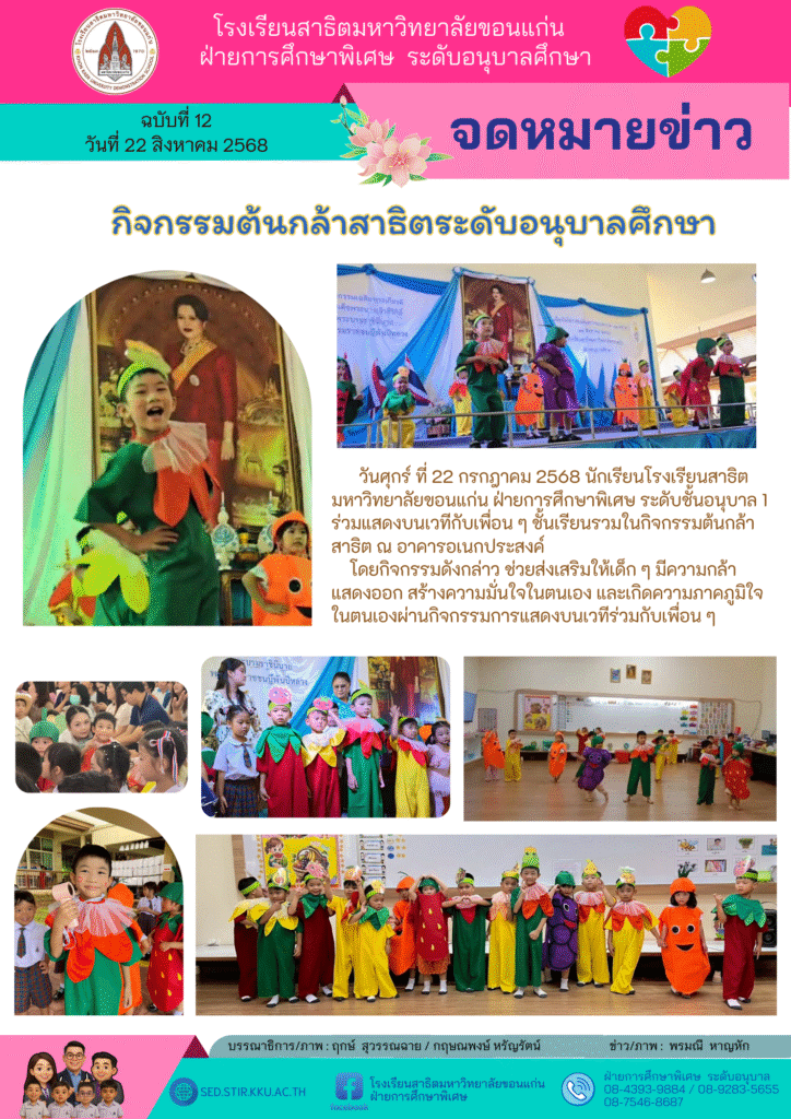 จดหมายข่าว โรงเรียนสาธิตมหาวิทยาลัยขอนแก่น ฝ่ายการศึกษาพิเศษ ระดับประถมและมัธยมศึกษา ฉบับที่ 8 วันที่ 21-25 กรกฏาคม 2568