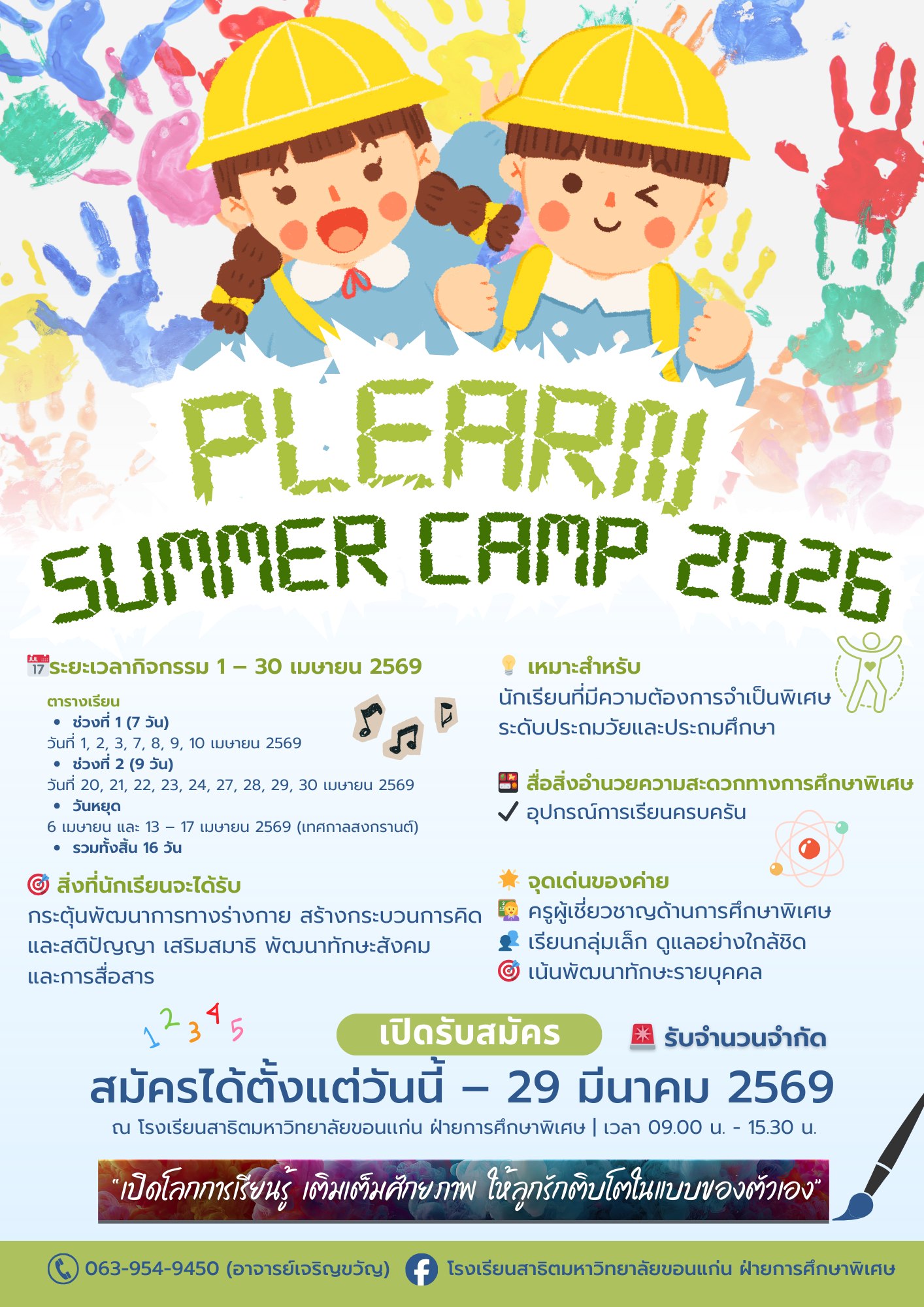 กิจกรรม PLEARN SUMMER CAMP 2026 เปิดโอกาสพิเศษสำหรับนักเรียนที่มีความต้องการจำเป็นพิเศษ เข้าร่วมประสบการณ์การเรียนรู้ในช่วงปิดภาคเรียน